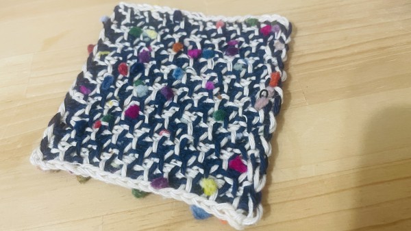 アフガン編みのコースター。