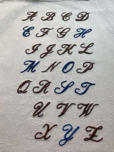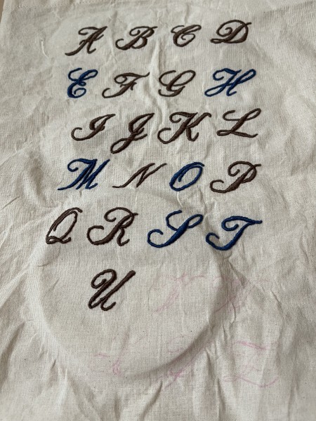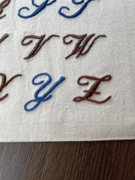 | 芯入サテンステッチでアルファベット刺しゅうを練習してましたが、ようやく26文字完了しました。 ガタガタの文字だけど、100均のエコバッグが可愛くなって満足です(*'▽'*)♪ まだまだ練習は必要だけど、最後の2文字yとzで何となくコツがわかってきたような気がします。 |