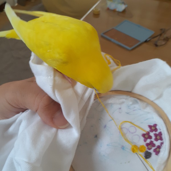 コメントありがとうございます 刺繍初心者なんですが、 キキちゃんにジャマされながら(笑) 完成させました