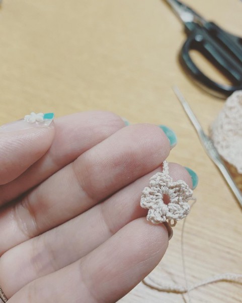 以前作ったヘアバンドを子供用に少し短く編みました。