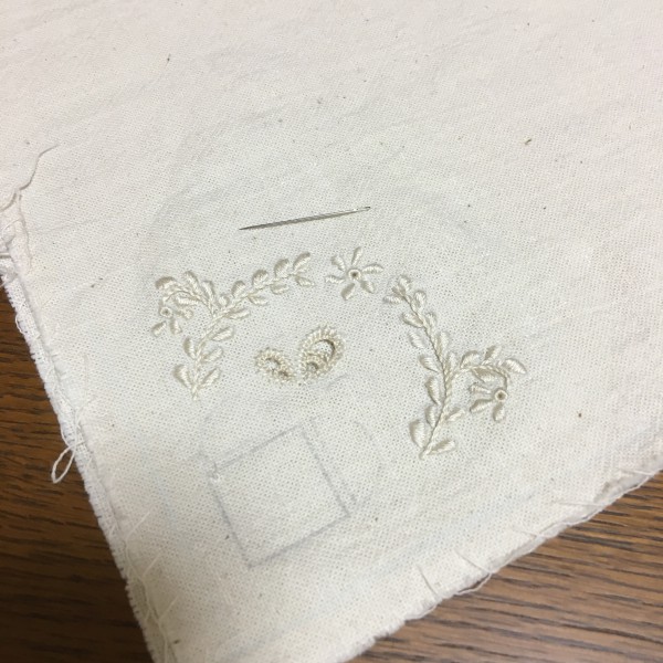 No.25では刺し辛く、存在感的にも微妙だったのでアウトラインとサテンはNo.16にした。太すぎ?時短のためぶっつけなので糸の太さ変えながら後戻りせず突き進む。