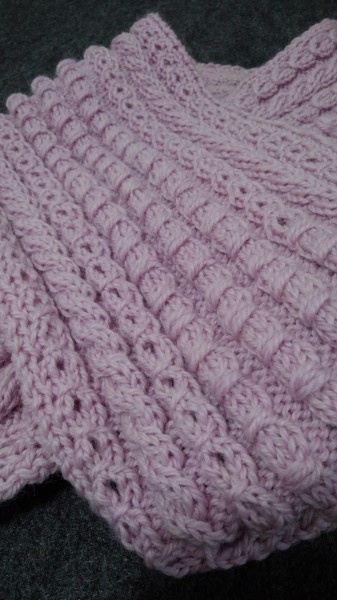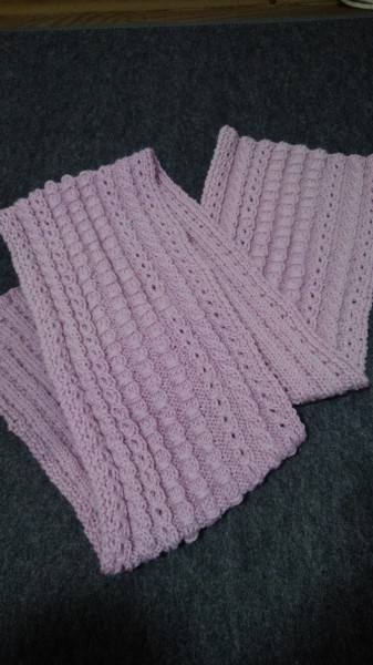 ノット編みで、しっかり防寒 してくれそうですね! 色もキレイ。 来シーズンが楽しみですねー。