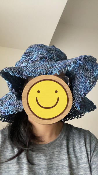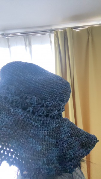 「かぎ針編みのバッグと小物」に収録されている「黒い帽子」を、ハマナカエコアンダリヤかすり染め色番224で編んでみました