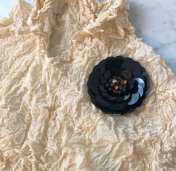 Tシャツにも、白シャツにもさりげなく使えるコサージュになりました!