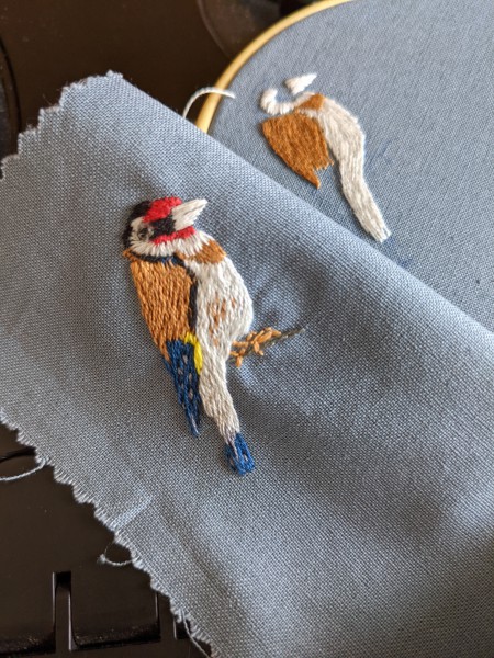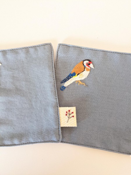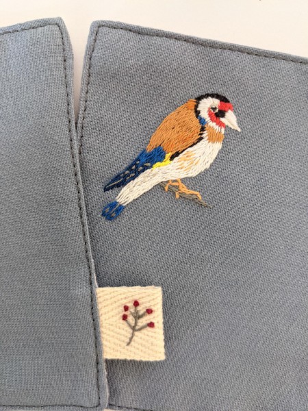 2羽目も指し終わったので、タグに刺繍しました。前回タグが小さすぎて、最後のミシン作業が大変だったので、1cm大きく変更。