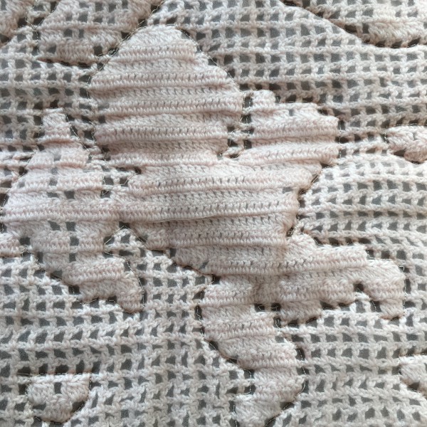 天使のかぎ針編みを中央に置いたヴィクトリアン調のキルト!