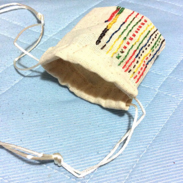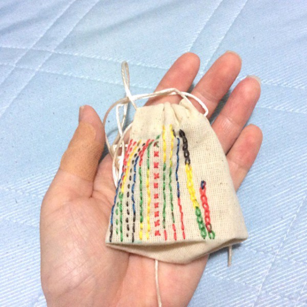 | ミニ巾着をまた作りました!マチ付き。 今度は、片面に刺繍をしてみました。 クロスステッチじゃない刺繍に慣れるため、練習がてら。 ヒモはちょうどいいのがなかったので、適当なサテンコードです。 細かい模様でみっちり埋めよう!と思って、小さめに刺繍を始めたのですが… あまりにも細かすぎて、途中で飽きてしまいました(^_^;) チェーンステッチの歪み方で、集中力が切れたのがわかりますね。笑 |