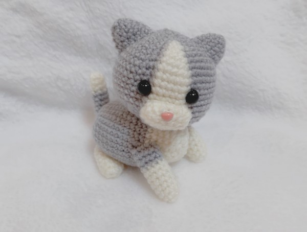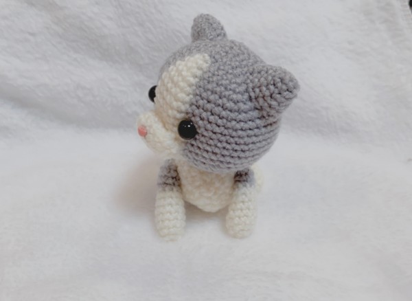 今日は「あみぐるみの日」ということで、「ハチワレ子猫」編んでみました。