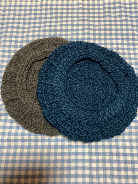 マレタケ荘さんの編み図を参考に作りました。自分でベレー帽かぶるかなぁと思いつつ勢いで2つ編んでしまいました。
