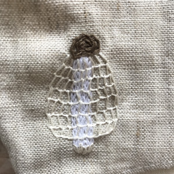シマエナガ刺繍のリネンマスクをリクエストいただいたので、シマエナガ・枝に止まるシマエナガたち・キヌガサタケ・カワセミ刺繍のリネン立体マスクを制作しました。