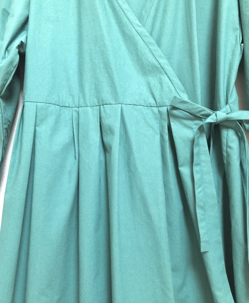 | これまでのカシュクールよりもアームホールを大きくし、コートとしてもワンピースとしても着やすいデザインになっています。用途によってサイズは工夫して作成してください。 ランダムに入っているタックが楽しいデザインですが、どんな仕上がりにしたいかは、型紙の時に実際にタックを畳んでみるとイメージしやすいですよ。 |