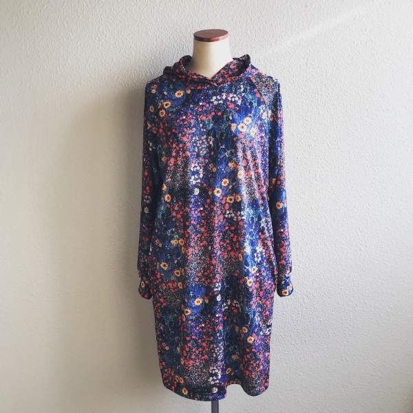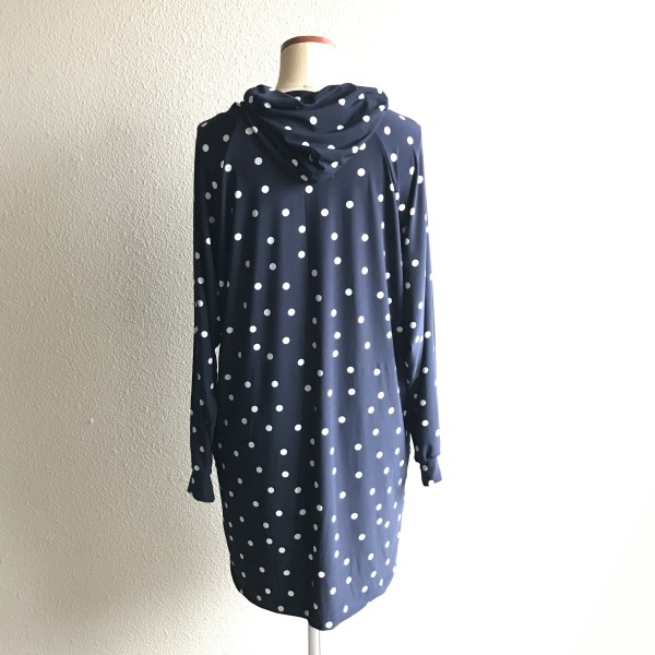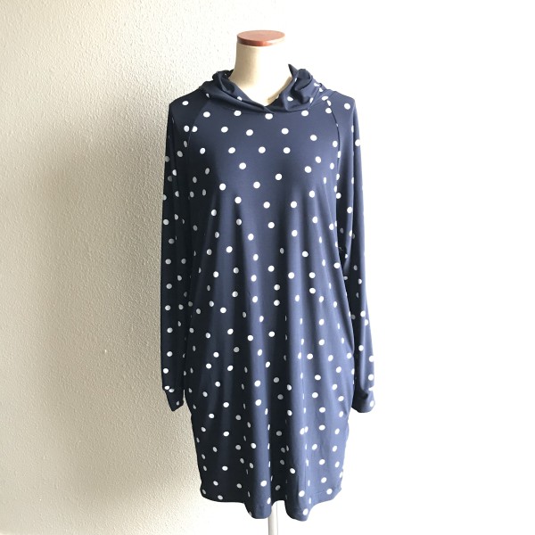 洋裁教室標本用花柄カットソーがイベントでお迎えいただいたので、ネイビーのドットで再び制作。