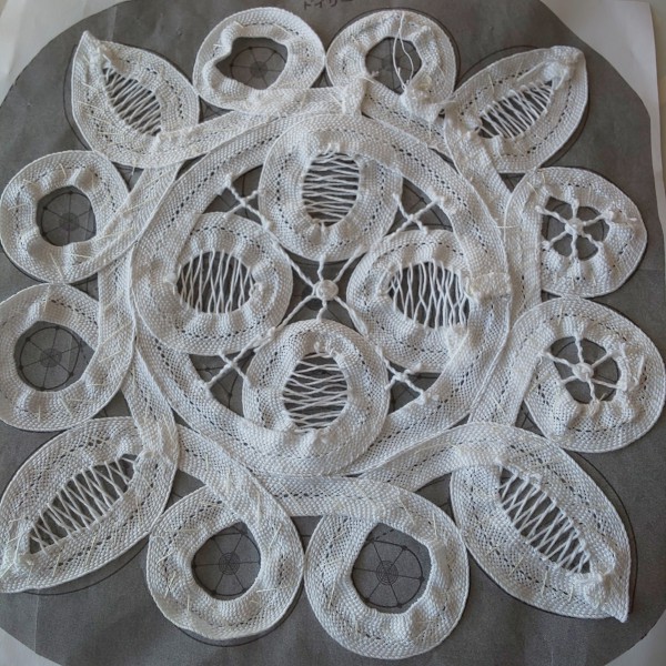 型紙に直にしつけをして形作っていきます