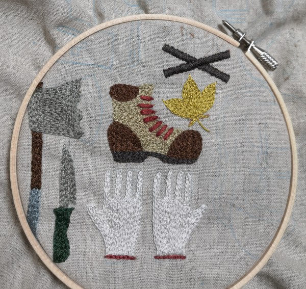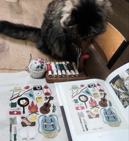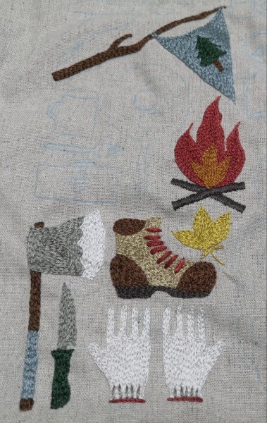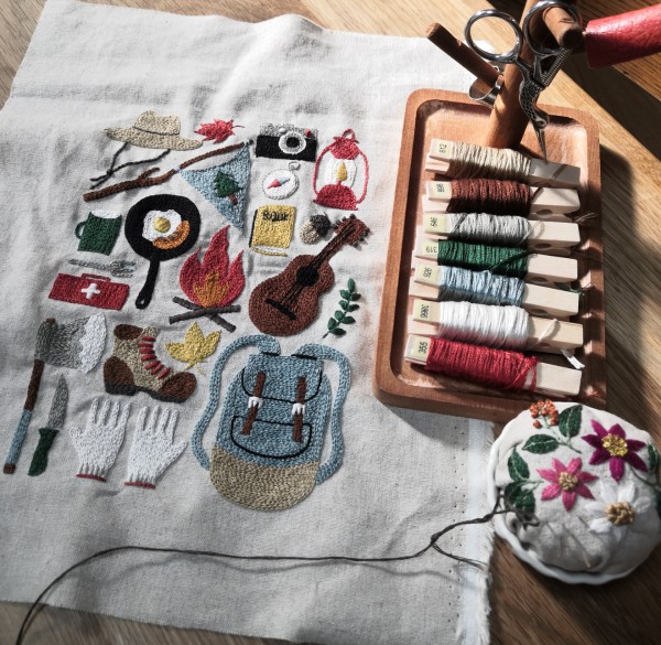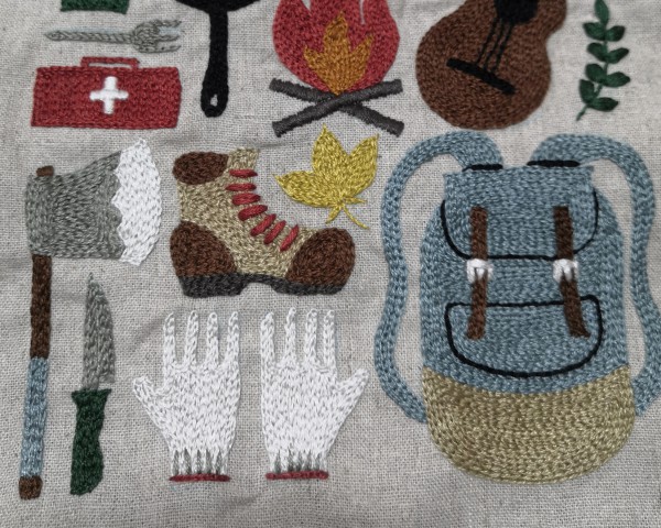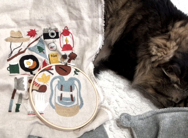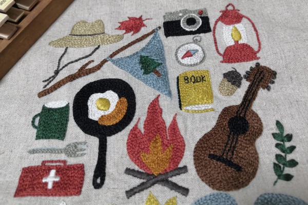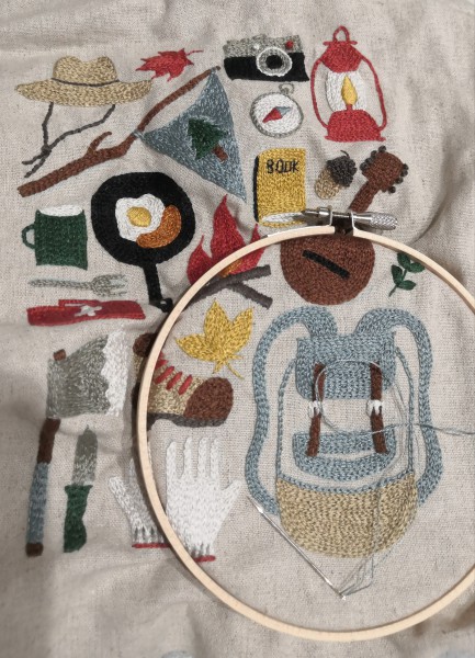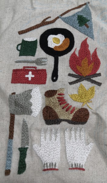 | 樋口愉美子 季節のステッチより キャンパー 初めての大きな作品。 大好きな図案で、一つ一つ完成させていくのが凄く楽しかったです☆ やはり刺繍していく中での布の縮み、図案の歪みが気になります(ToT) |