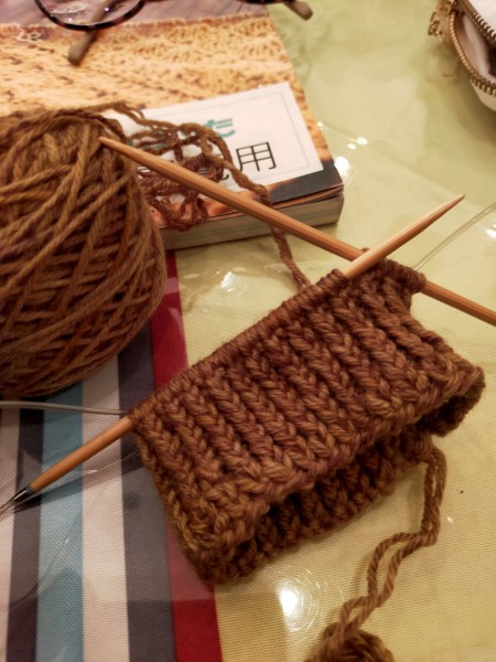 ここまでは『こぶたニット塾』で教えてもらい、自宅ではもう片方のメリヤスはぎに一人で挑戦。