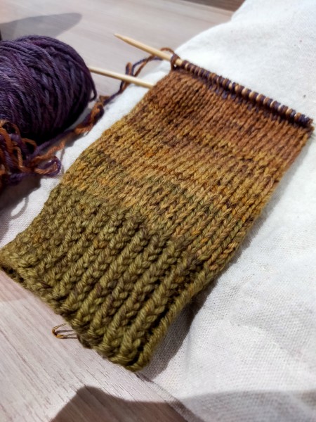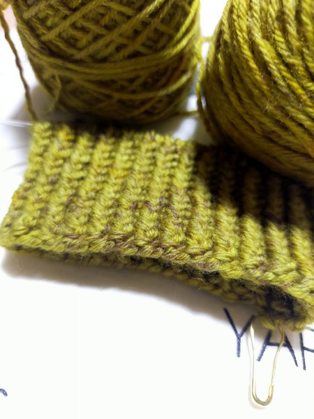 いい気になってゴム編みから表編みに入りガンガン行こうぜ!との勢いで編んだところ、二目一度があることに気づく(アホ)。