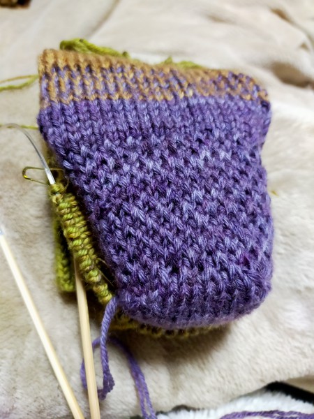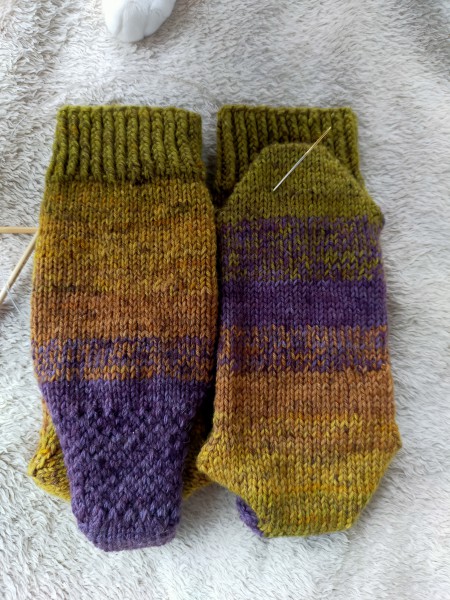 つま先とかくるぶし部分がどうしても緩くなって落ちてはいないのに穴が空いたようになったり、糸替えをもっと上手くやりたかったり、糸始末をもっと・・・と、課題は盛りだくさん。