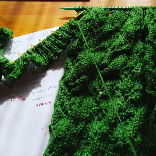 模様編みは初めてだったので苦戦しましたが出来上がりの嬉しさはひとしおでした。カーディガンの左右を間違えてしまったりもしました。