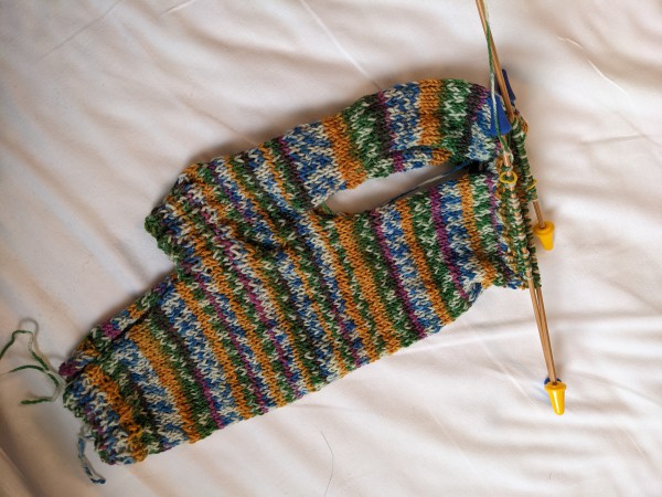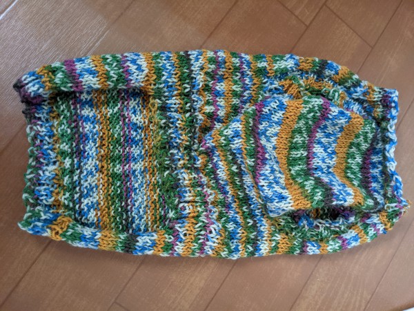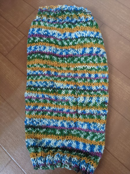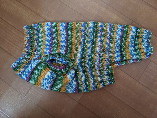 布で作る時の型紙に合わせて適当に編みました。首のところを もう少し長くした方が良かったかも^^;