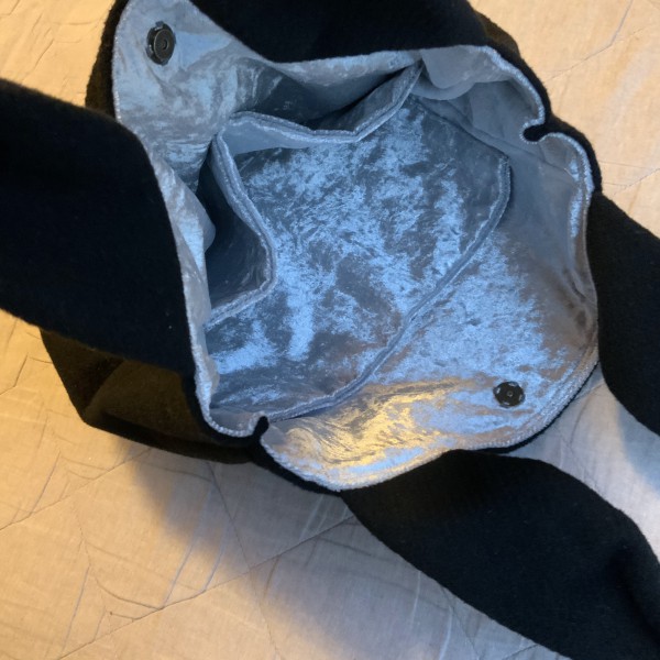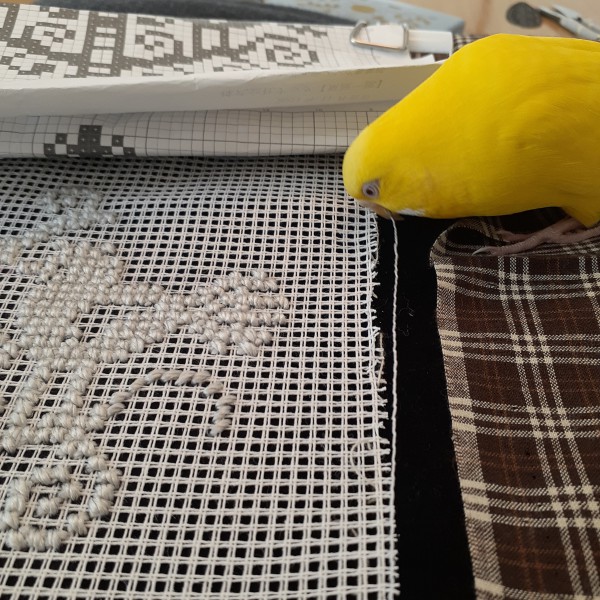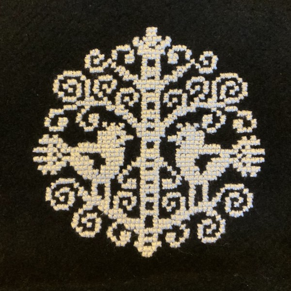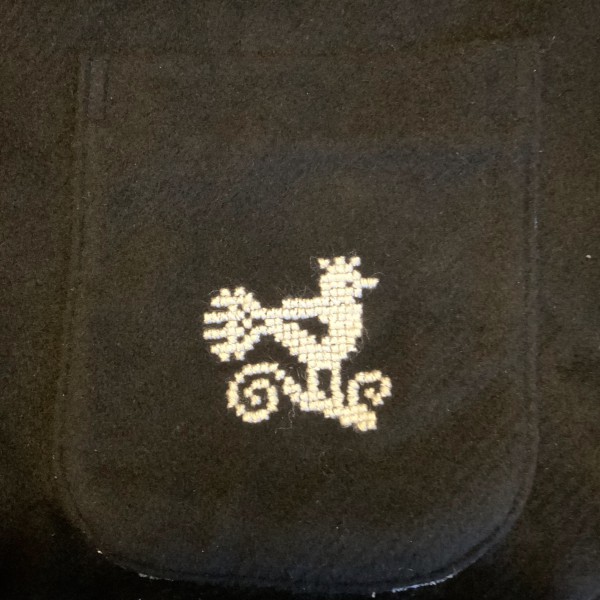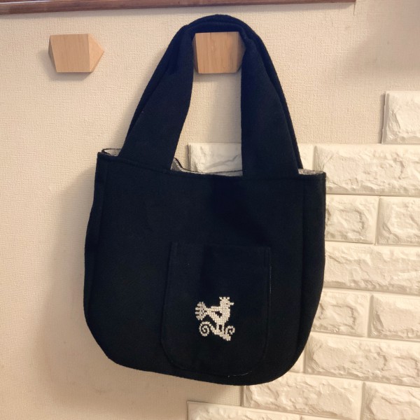 手持ちウールの生地があったので、お気に入りの図案をクロスステッチしてつくりました。