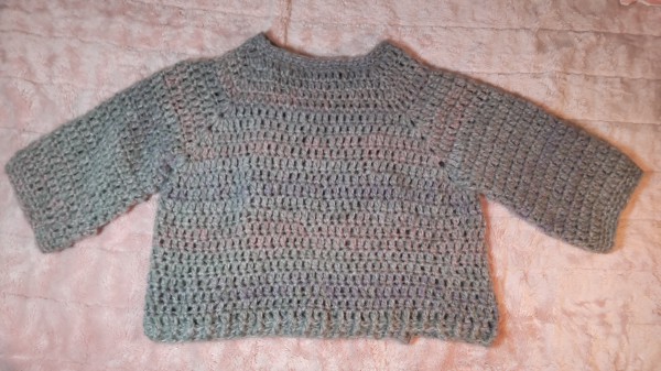 袖は仕事の時、長いと邪魔なのと、ふんわりした七分袖にしたかったので、減らし目せず、襟と同じく細編みで仕上げました。