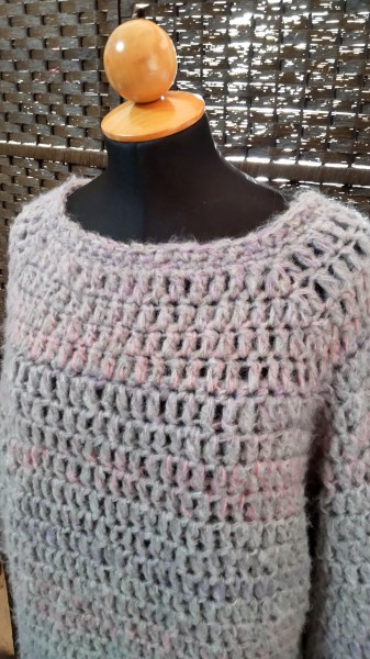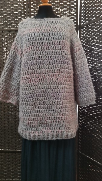 | トップダウン モヘアのセーター 短めの丈のつもりが、予定よりかなり長くなって、おしりが隠れる長さになりました。 軽くてふわふわであったかくて、チクチクしないし、着心地とても良いです。 |