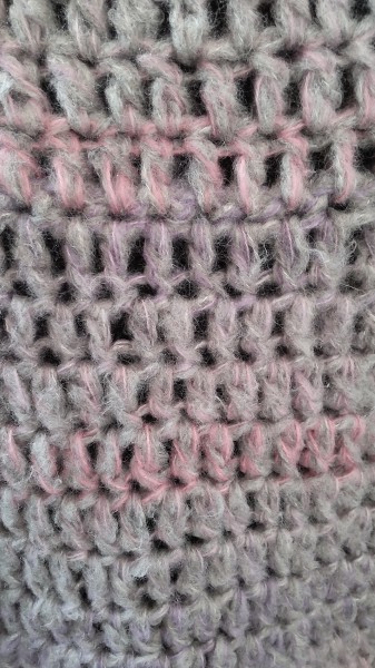 ピンクやムラサキがグレーの中にグラデーションで現れて、単調ではないけど派手過ぎない色になりました。