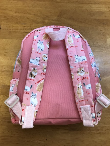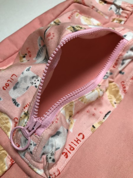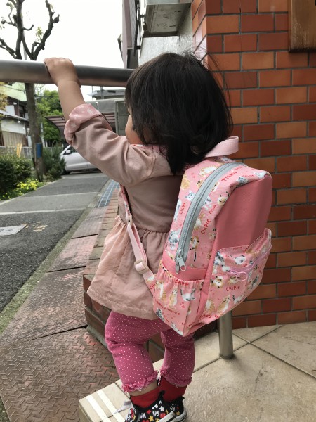 1歳の娘の登園用リュックを作りました。猫が大好きなので、猫柄の生地を使っています。