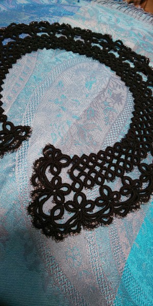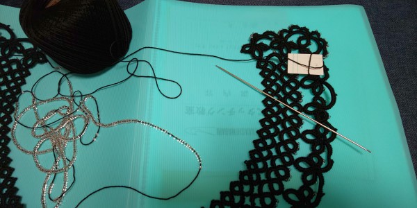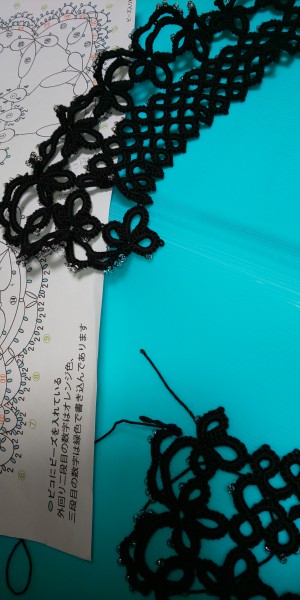 シャトルを使わない高島タティングレースで、ビーズ付き襟を作りました