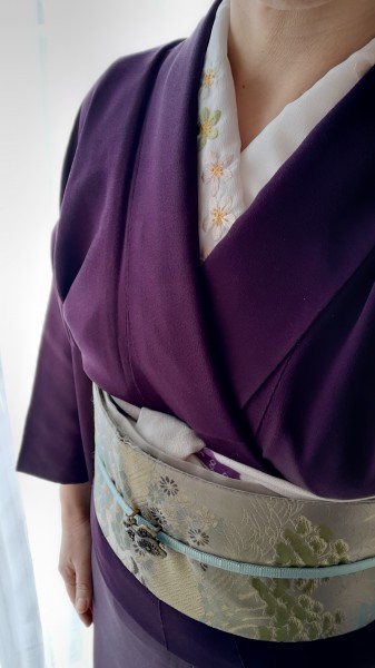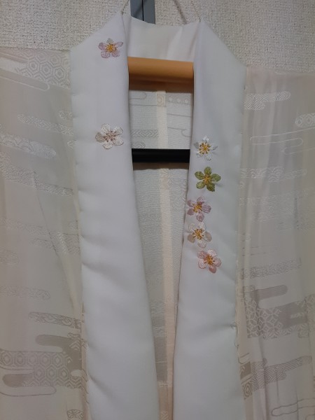 日本刺繍で梅の半襟を作りました