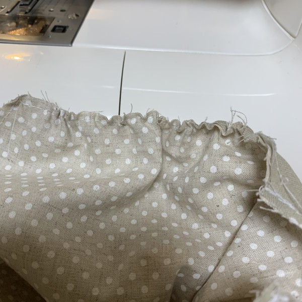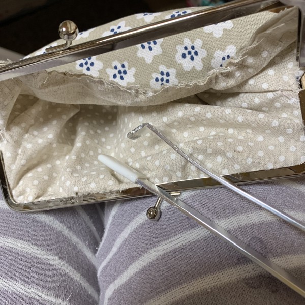 表布、裏布共に底の部分にタックを取り、がま口側はギャザーを入れています。