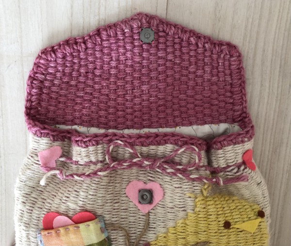 | 【第2回輪織りコンクール:エントリーNo.009】 【第2回輪織りバッグコンクール投票サイト】https://asahimobag.com/archives/1727》 投票受付期間は1/20~1/31 何を作ろうかとおりりんを眺め続けていた時、片面だけ織れるよね、それを折り返すと蓋になる!ってことはリュックサックだ!!と思いつきました。幼児が、自分のオムツやおやつ等を入れてかるえるよう軽くて丈夫な物、なんと言ってもカワイイようにと制作しました。 自然素材の麻紐で作るので、それに合わせて、できるだけ金具等を使わずに仕上げるよう考えました。 |
