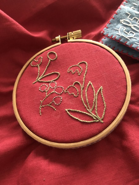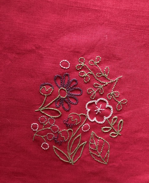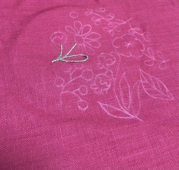 下絵を布に写して、刺しゅうスタート。久しぶりの糸刺しゅう、やっぱり楽しい!