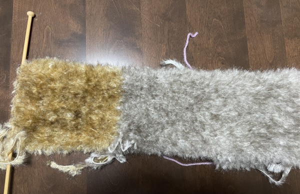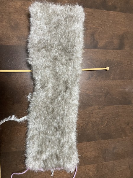 ファーヤーンを使って編んだスヌードです。首元に一重でも、二重に巻いてもOK