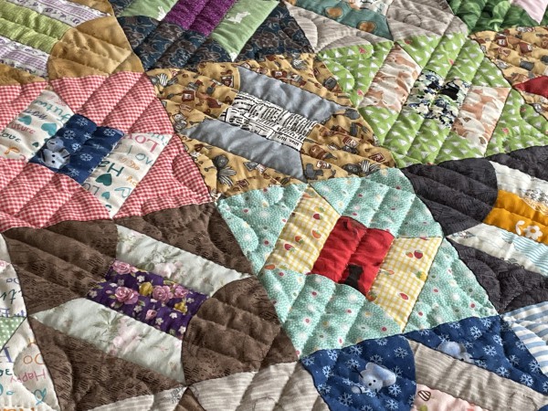 | こたつの上掛け。 パターンは全て手持ちの端切れを使ってます。 サイズ 182×227cm |