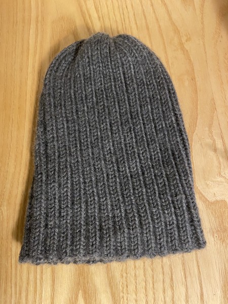 2目ゴム編みのニット帽です。娘の誕生日にプレゼントするために作成。輪針を初めて使用してみましたが、とてもやりやすかったです。