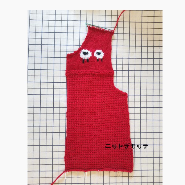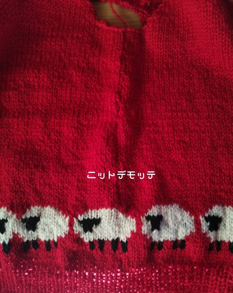 羊さんの編み込み模様は脇をとじた時に