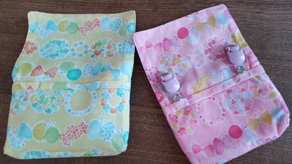 | 娘たちに移動ポケットを作りました。 ティッシュとハンカチが入る、シンプルなタイプです。 |