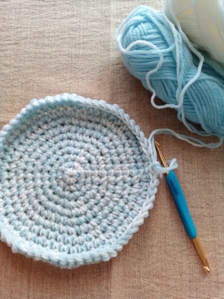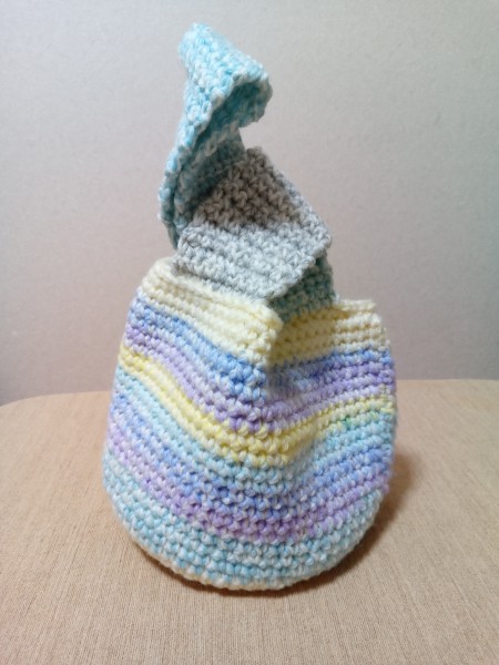 本体が編めました。一作目よりも小ぶりになったので、違う取手を付けようと思っています。