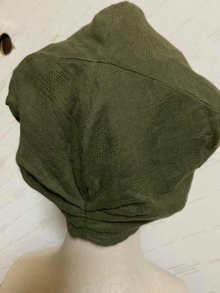地味目のカーキ色なのでハートの刺繍を控え目に縫いました。