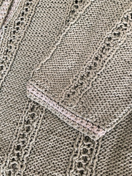 ちょっとおしゃれな感じで、季節の変わり目に使えるカーディガンを機械編みで作りました。
