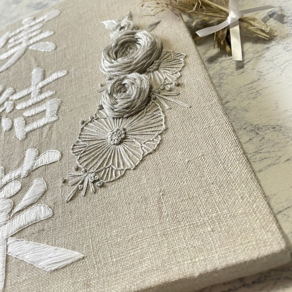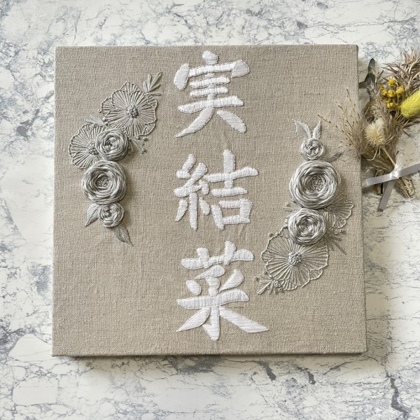 今回の誕生花はマツバボタンをイメージして刺繍しました。