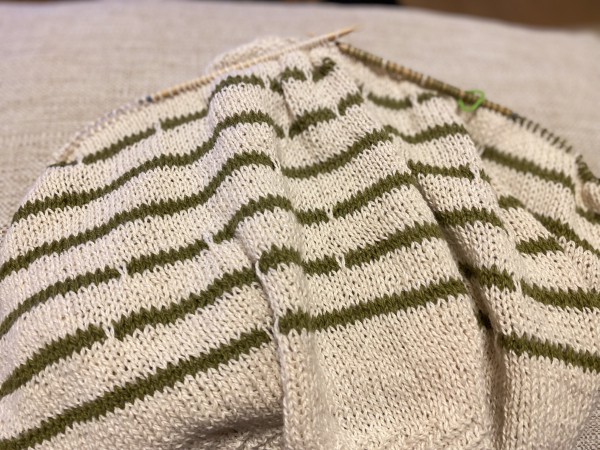 コットンでプルオーバー編んでます。 春の間に着たい!! 早く編み上げなきゃー。