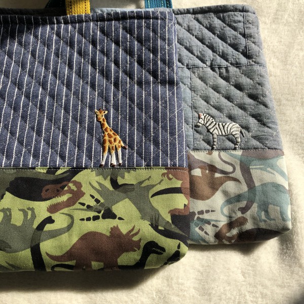 持ち手の色遣い、サバンナに立つようなアップリケの位置など