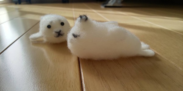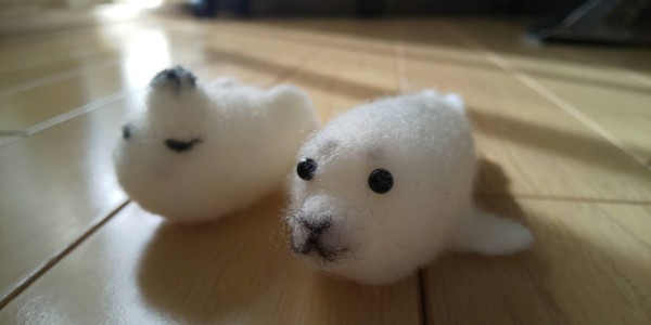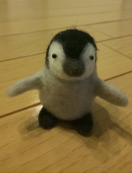 初めての羊毛フェルト作品で、パーツの組み合わせから目・鼻・口など細かい部分が大変でした。全体のバラス、大きさも難しくぽんぽこりんや、ちょっとおっさん顔になりましたがこれはこれでいいかな?と思ってます。