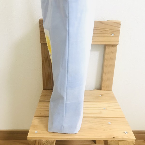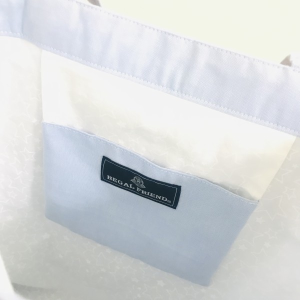 表地は古いワイシャツ生地をリユース、タグは内ポケットに付けました。