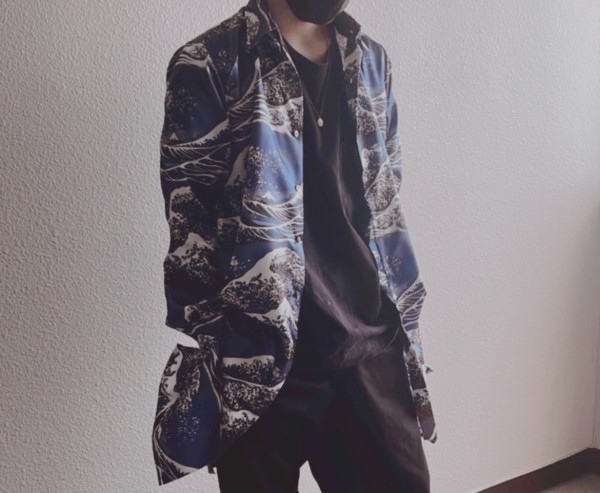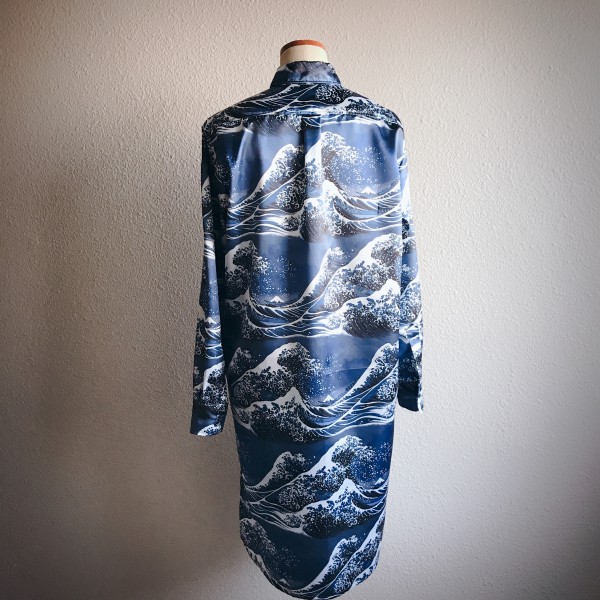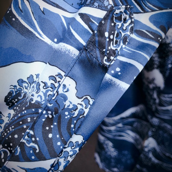 葛飾北斎ポリエステルプリント生地で、双子boy用ロングシャツを制作しました。