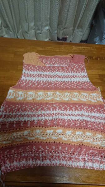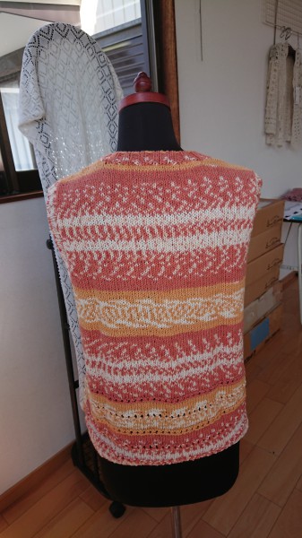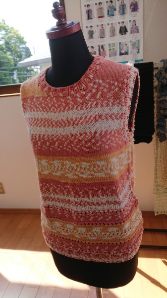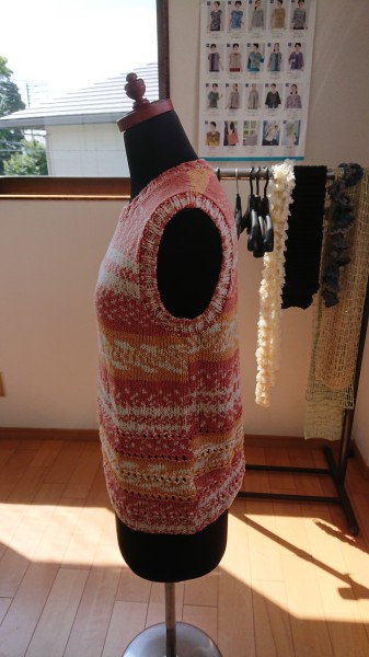 製図よりちょっと大きく出来上がりました~裾のゴム編みで調整します。