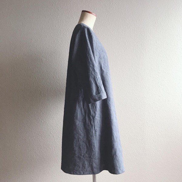 ふくれ織りコットンで、定番のワンピースを制作しました。