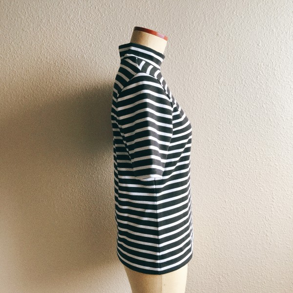 160cm幅2mのボーダーカットソーで、半袖ハイネック1着とオフネックスタンドカラー2着出来ました!